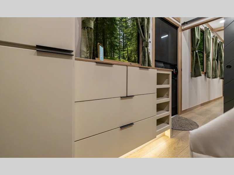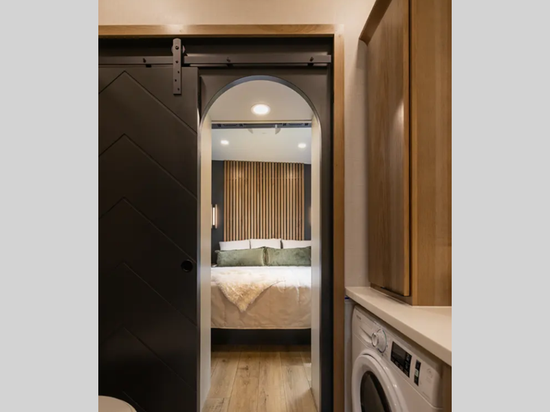 Each destination trailer is built with Azdel Onboard composite sidewall panels for superior insulation, lighter weight, and lasting durability. There are also dual pane windows, a durable rolled fiberglass roof, and stylish full-body paint. The hardwood cabinetry inside is sure to make you feel at home, along with luxury vinyl flooring, a 10" thick memory foam mattress, and residential appliances.