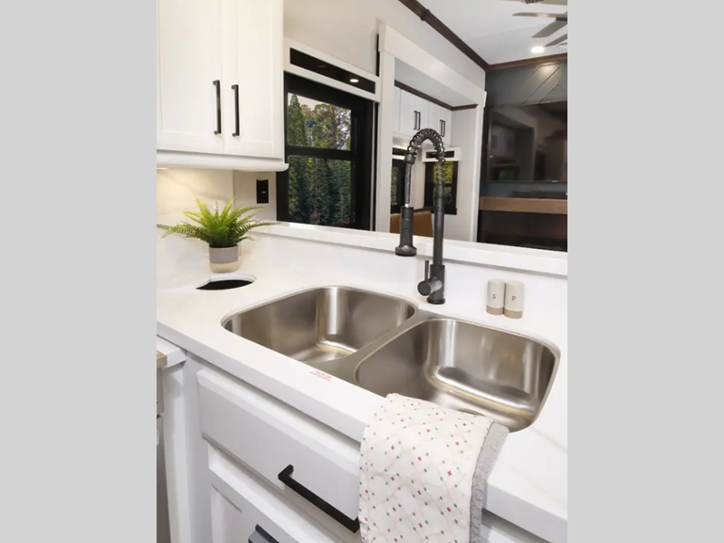 Forest River RiverStone fifth wheel 43BFC highlights: Rear Kitchen Pull-Out ... more about RiverStone 43BFC