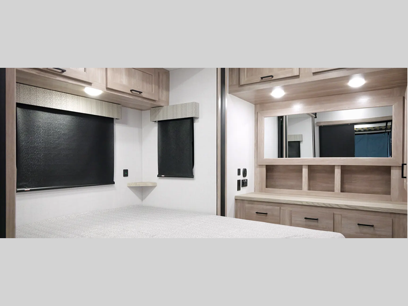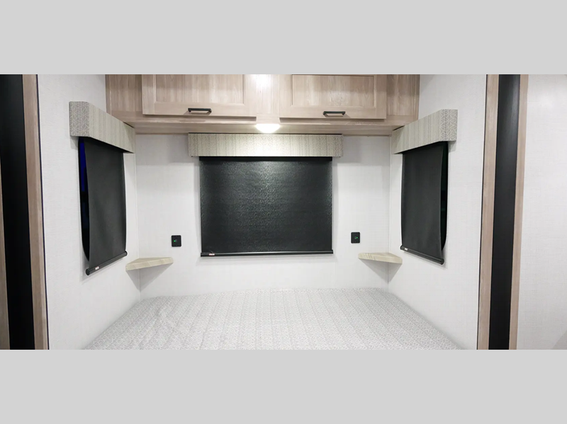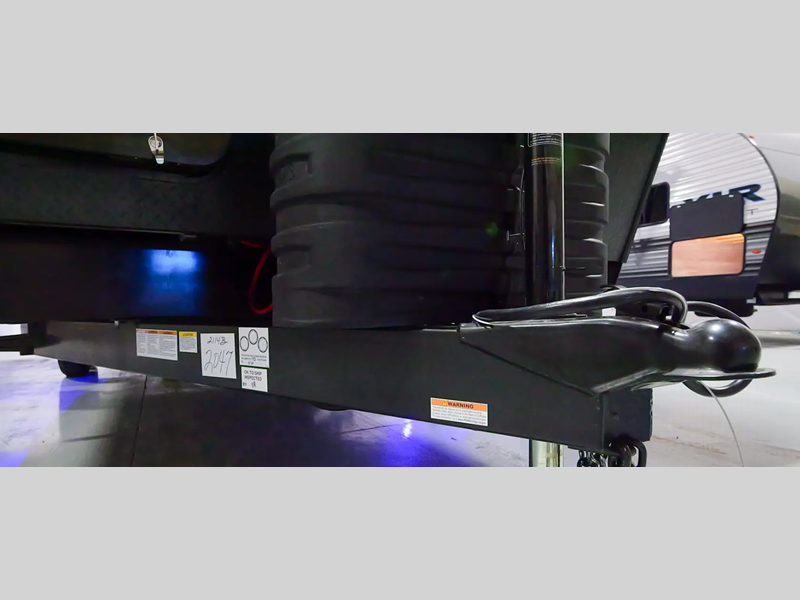 There is fiberglass flooring insulation that will withstand your many adventures plus a rear beaver tail frame for easy unloading and an external fuel cell with a pump. You will feel right at home with decorative glass cabinet doors and LED lights, and there is a tankless water heater to provide endless hot showers after trail riding. The Alumifoil insulated enclosed underbelly will help extend your camping season, and each model is back up camera ready if you want to make parking easier than ever.